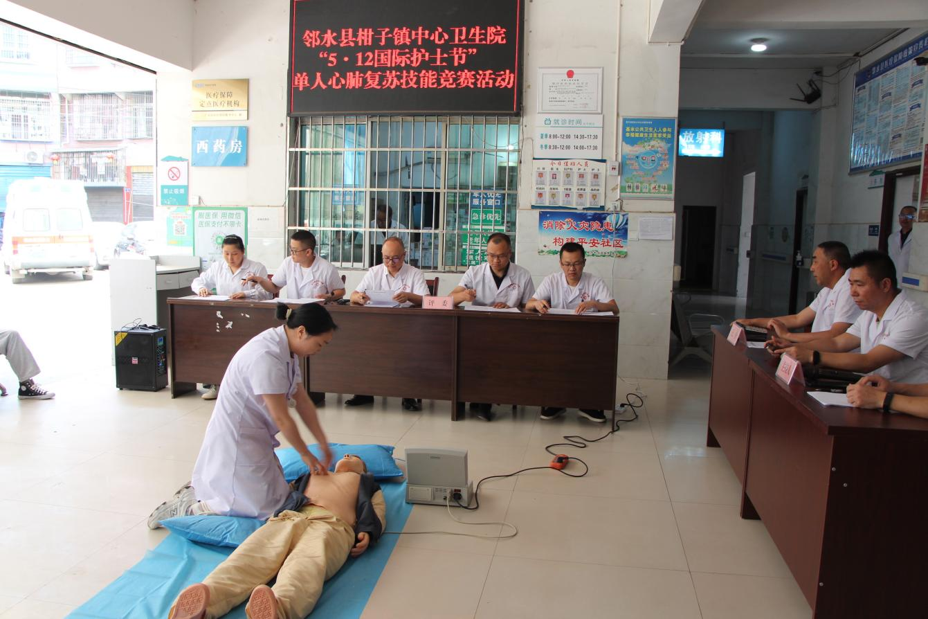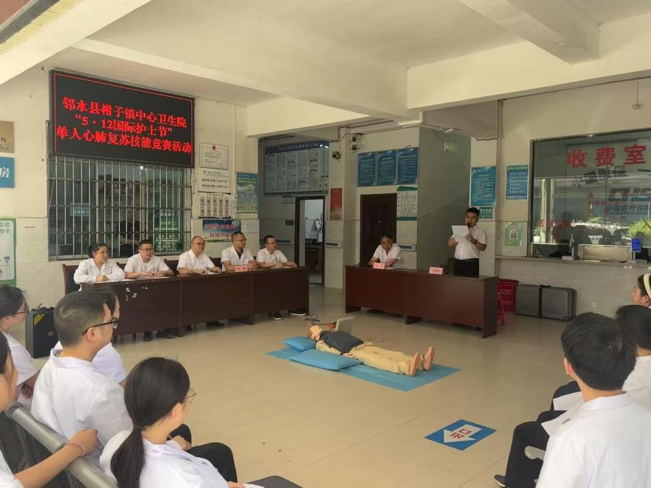 为纪念第114个“5·12”国际护士节,进一步提升我院医务人员的急救技能和应急处置能力,弘扬南丁格尔精神,2025年5月12日下午在我院一楼大厅成功举办以“急救生命,‘救’在身边”为主题的单人心肺复苏技能竞赛活动。此次活动由医务科牵头组织,全院医务人员积极参与。